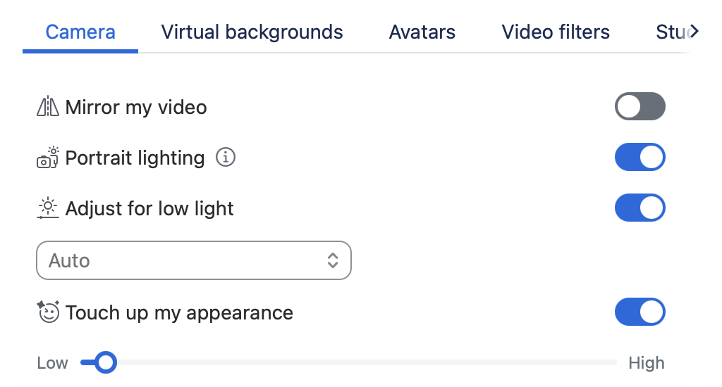 Both platforms now have built-in tools like touch-up filters, brightness adjustment, and background blur. Zoom in particular gives you fine-grained control over appearance and lets you upload branded or minimal backdrops.