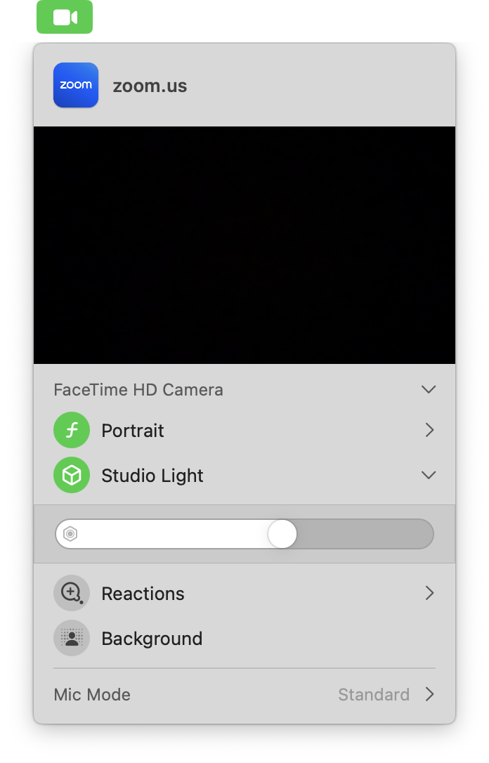 If you’re on a Mac, the new “studio light” and “portrait mode” options in your menu bar (accessed via the camcorder icon with the green background) are great. I like Apple’s built-in backgrounds too—they’re abstract and bright, and they match natural lighting angles surprisingly well.